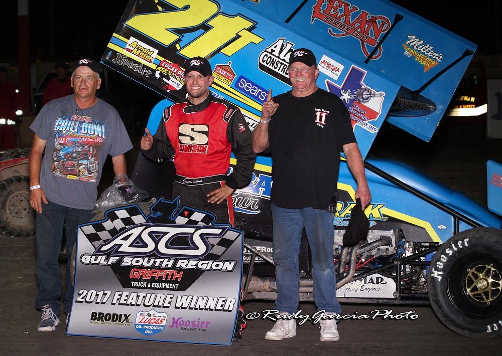 CRANDALL, Texas (May 26, 2017) Kicking off a three night Memorial Day Weekend swing, the Griffith Truck and Equipment ASCS Gulf South Region stopped by RPM Speedway in Crandall, Texas with series point’s leader Ray Allen Kulhanek picking up his first victory of the season in ASCS competition. The $2,000 triumph also ties Ray Allen Kulhanek with Gary Wright for second on the all-time ASCS Gulf South win list at 23.